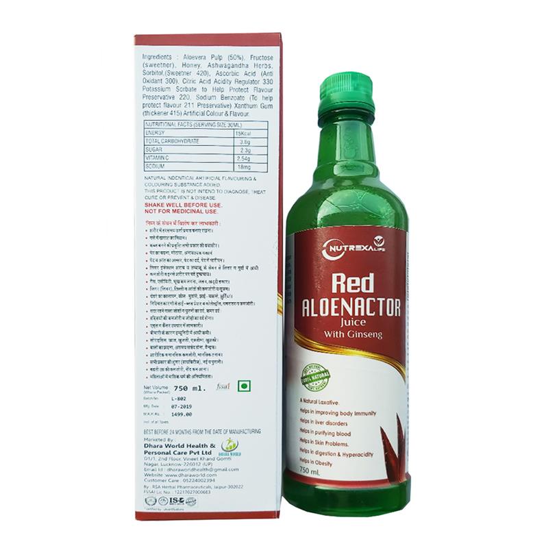 Nutrex Red alovera Nactor Juice contains high quality aloe vera, has non synthetic formula